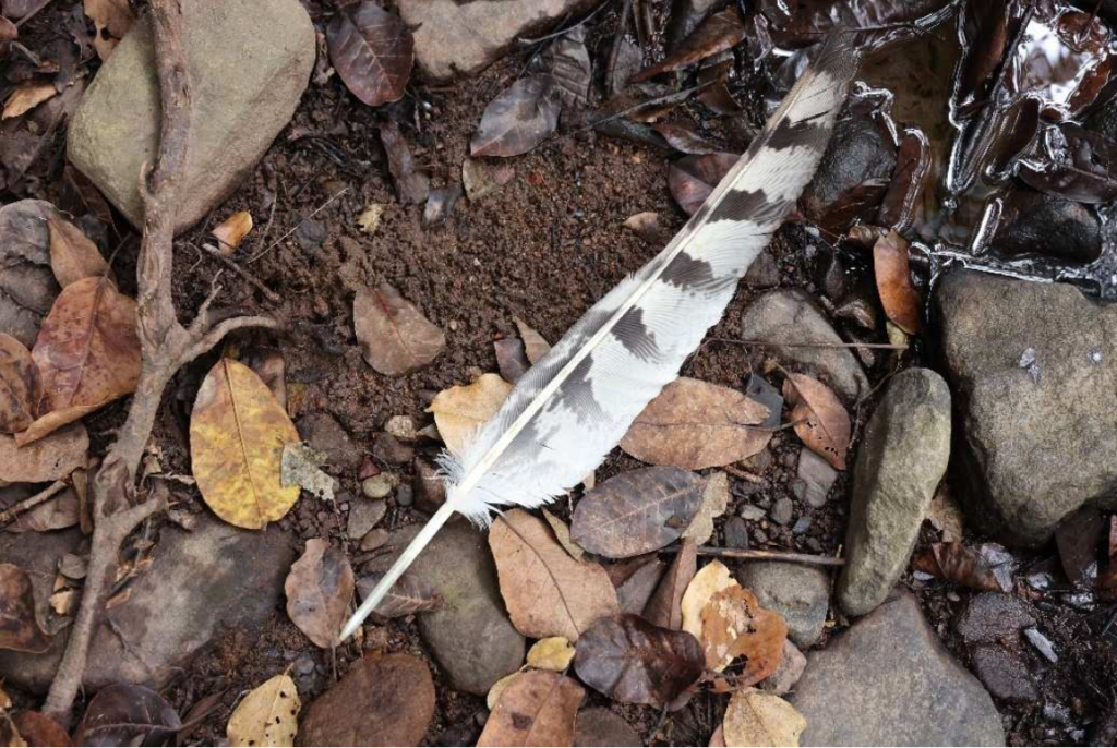 Pena de harpia adulto encontrada no córrego das Pedras por Tiany Duran.